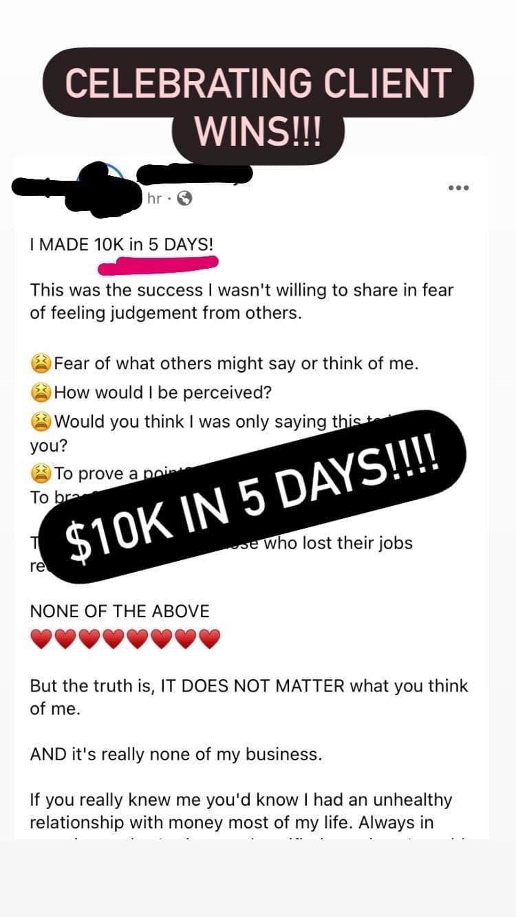 If you implement what I coach you to do, attend the training calls, submit your accountability forms, and implement the 6-steps of business of coaching and you don’t make 100% return on your investment - I’ll keep coaching you for free until you do.